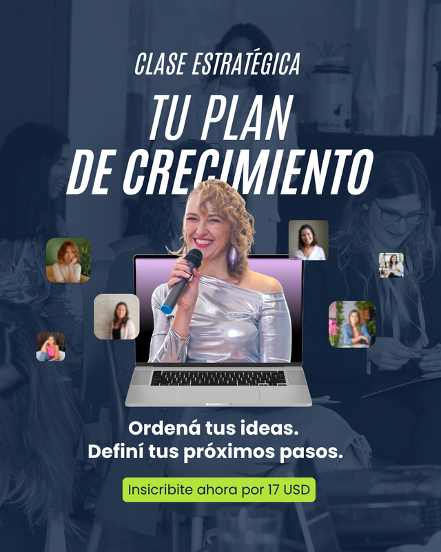 En esta clase estratégica vas a crear tu Plan de Crecimiento: un paso a paso simple y posible para los próximos 90 días para avanzar con lo que soñas hace tiempo. Sin exigirte ser quien todavía no sos.