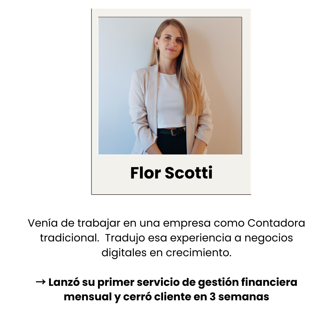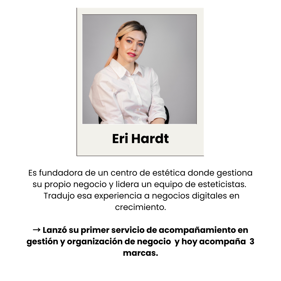 Hace años acompaño a mujeres a ordenar sus negocios, sus procesos y su forma de mostrarse al mundo. Este programa nace de todo lo que aprendí trabajando con marcas reales y viendo qué necesitan los negocios para crecer... y quién puede ocupar ese lugar clave: vos.